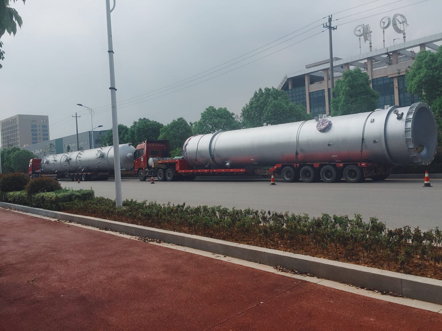 云南玉溪15000空分項目空氣冷卻塔和水冷卻塔制造順利按時完工,按時交貨??諝饫鋮s塔殼體重30.5t,直徑2.6m,高24.7m;水冷卻塔殼體重17.4t,直徑2.6m,高17.3m。